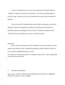 Dans le cadre de ma préparation au BTS Comptabilité et Gestion, j'ai effectué un stage 6 semaines dans l'entreprise Centre Comptable Informatique Du Hainaut Cambrésis à Denain ou l'on m'a confié la comptabilité de plusieurs sociétés.