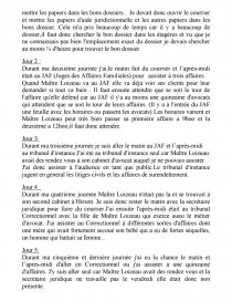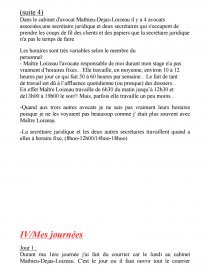 - Maître Loizeau l'avocate responsable de moi durant mon stage n'a pas vraiment d’horaires fixes... Elle travaille, en moyenne, environ 10 à 12 heures par jour ce qui fait 50 à 60 heures par semaine... Le fait de tant