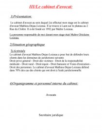 Dans le cabinet d'avocat Mathieu-Dejas-Loizeau il y a 4 avocats associées,une secrétaire juridique et deux secrétaires qui s'occupent de prendre les coups de fil des clients et des papiers que la secrétaire juridique n'a pas le temps de faire.