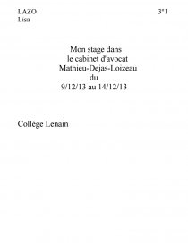 Dans le cadre de mon année scolaire de 3éme je dois accomplir un stage d'une duré d'une semaine.Le but de mon stage étant de me faire découvrir le fonctionnement d'une entreprise j'ai donc choisi de le faire dans un cabinet d'avocat.J'ai aussi choisi de le faire dans un cabinet d'avocat car les métiers ayant un rapport avec la justice comme juge, avocat, procureur etc m'intéresse beaucoup.