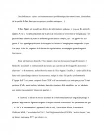 L’Eco Appart est un outil qui délivre des informations pratiques et propose des conseils adaptés. Cela se fait principalement par la prise de conscience d’économies d’énergies que l’on peut effectuer chez soi à partir de différents gestes/astuces simples, que l’on appelle les éco gestes. L’Eco appart propose aussi de décrypter les factures d’énergie pour comprendre ce que l’on paye, éviter les surprises de la facture de régularisation, accompagner pour changer de fournisseur...