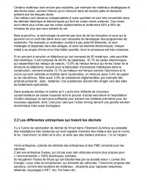 Mais aujourd’hui, la technologie ne permet pas tous de de les récupérer et ceux qui le peuvent ont un coût très élevé donc ceci nécessite de développer des programmes de recherche. Par exemple un ordinateur contient à peu près 60 éléments, ils sont mélangés et dispersés dans des alliages, et dans les déchets électroniques, chaque métal à sa propre chimie et en très faible quantité, donc le processus est très complexe.