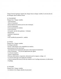 Chaque fonction logistique supporte des charges faxes et charges variables.il convient alors de les distinguer dans le tableau suivant :