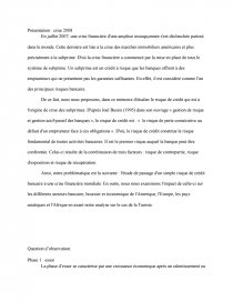 En juillet 2007, une crise financière d'une ampleur insoupçonnée s'est déclenchée partout dans le monde. Cette dernière est liée à la crise des marchés immobiliers américains et plus précisément à la subprime. D'où la crise financière a commencé par la mise en place de tous le système de subprime. Un subprime est un crédit à risque que les banques offrent à des emprunteurs qui ne présentent pas les garanties suffisantes. En effet, il est considéré comme l'un des principaux risques bancaire.