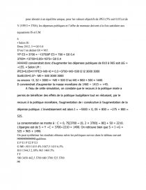 Conformément aux hypothèses initiales, le niveau de revenu de plein emploi YPE est lié à la population active par la relation PA = 0,01YPE. D’où YPE = PA = 37 = 3700.