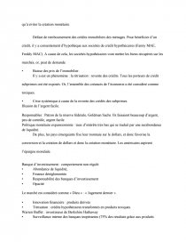 • Crise systémique à cause de la revente des crédits des subprimes.