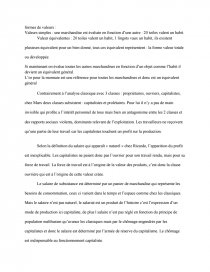 Valeur équivalentes : 20 toiles valent un habit, 1 lingots vaux un habit, ils existent plusieurs équivalent pour un bien donné, tous ces équivalent représentent : la forme valeur totale ou développée.