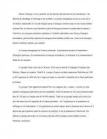 Le groupe Total appartient aujourd’hui à la catégorie des « majors » soit les six plus grandes compagnies pétrolières privées mondiales. Total est présent sur les cinq continents dans plus de 130 pays et compte plus de 90 000 salariés. Total est un groupe intégré qui exerce ces activités dans tous les segments de la chaîne pétrolière : de l’exploration et la production au raffinage et à la distribution. C’est également un acteur majeur dans le domaine de la chimie et il détient des participations dans les secteurs du charbon, et de la production d’électricité. Par ailleurs le groupe participe à la croissance des nouvelles énergies renouvelables (solaire, biomasse, nucléaire).