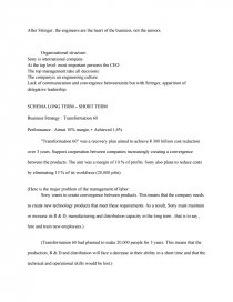 Sony wants to create convergence between products. This means that the company needs to create new technology products that meet these requirements. As a result, Sony must maintain or increase its R & D, manufacturing and distribution capacity in the long term , that is to say , hire and train new employees.)