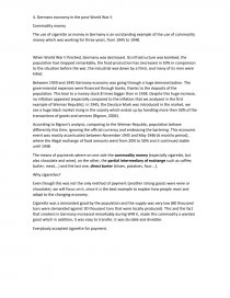 Next, we will analyse two cases through Germany’s history where money was out of control and the differences and similarities between them: The first case is an analysis of the great depression after the WWI, its causes as well as its consequences for the economy, and the solution implemented to amend the situation. The second case is based in the WWII, when, the inflation did not reach such a high level, but still, people started distrusting the system and appealed to the commodity money rejecting the official currency of the country.