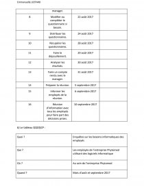 6 | Réaliser un questionnaire destiné aux employés. | 20 août 2017 | |