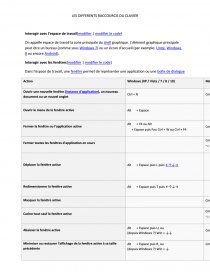 LES DIFFERENTS RACCOURCIS DU CLAVIER