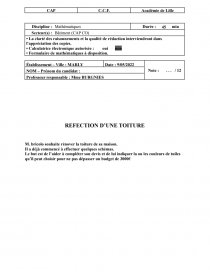 - Calculer l’aire de la surface de ce toit en indiquant tous les calculs faits.