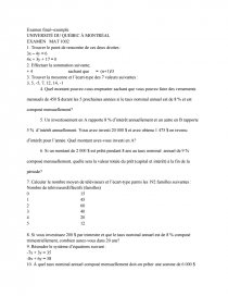 14. Vous souhaitez avoir un million $ dans 30 ans. Si le taux nominal annuel est de 9 % composé mensuellement, quel montant devez-vous investir à chaque mois pour réaliser votre objectif?