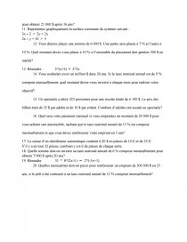 12. Vous désirez placer une somme de 6 000 $. Une partie sera placée à 7 % et l’autre à 10 %. Quel montant devez-vous placer à 10 % si l’ensemble du placement doit générer 500 $ en intérêt?