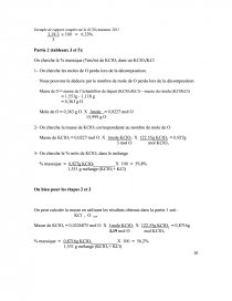 Exemple du calcul du % massique de KClO3 :