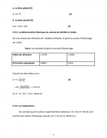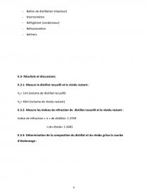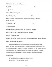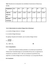 - La distillation est presque parfaite, étant donné qu’il y’ait un résidu de 0.8ml, ce qui montre que la séparation d’un mélange azéotropique est facile par une distillation flash.