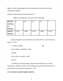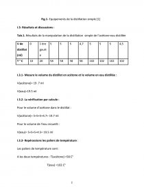 Tab.1. Résultats de la manipulation de la distillation simple de l’acétone-eau distillée