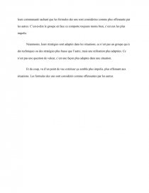 Néanmoins, leurs stratégies sont adaptés dans les situations, ce n’est pas un groupe qui à des techniques ou des stratégies plus basse que l’autre, mais une utilisation plus adaptées. Ce n’est pas une question de valeur, c’est une façon plus adaptes dans une situation.