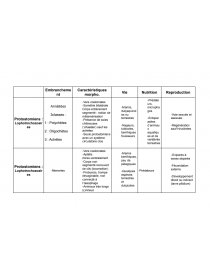 Embranchement | Caractéristiques morpho. | Vie | Nutrition | reproduction | |