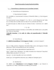 - Transmittance, absorbance et Loi de Beer Lambert.