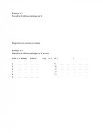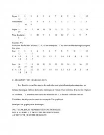 Les données recueillies auprès des individus sont généralement présentées dans un tableau statistique : tableau de la série statistique de l’étude. Il est constitué d’au moins 2 lignes ( ou colonnes ) ; la première étant celle des modalités de X, la seconde celle des effectifs.
