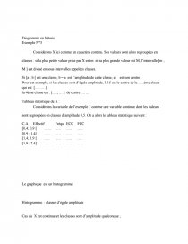 Considérons la variable de l’exemple 3 comme une variable continue dont les valeurs sont regroupées en classes d’amplitude 0,5. On a alors le tableau statistique suivant :