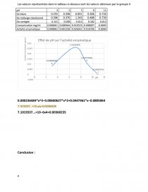 A cause des erreurs dans la manipulation on a commis des erreurs dans la mesure de pH = 7 et pH = 9 , où on remarque que les valeurs de Do des blancs est plus élevé que la valeur de Do des tubes réactionnels , ce qui va nous donner un résultat négative de dosage corrigé . En plus , on est sceptique sur les deux dernier valeurs où pH = 9 et pH = 11 où non seulement les deux valeurs sont très proche mais aussi la valeur de la Do corrigée correspondante à pH = 11 est plus grande que celle de pH = 9 ce qui est non intuitive.