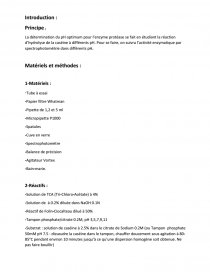 La détermination du pH optimum pour l’enzyme protéase se fait en étudiant la réaction d’hydrolyse de la caséine à différents pH. Pour se faire, on suivra l’activité enzymatique par spectrophotométrie dans différents pH.