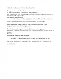 Son torse ondule... La machine suit, patiente, obéissante. Elle dessine de grands arcs de cercle, d’éphémères boucles, esquisse de gigantesques fleurs, trace des corolles.
