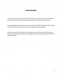 Je tiens aussi à remercier le laboratoire de La Capelette pour son accueil de trois jours durant mon stage afin de me permettre de découvrir de nouveaux automates et ainsi de comparer les différentes techniques utilisées.
