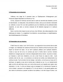 Ce lieu, propose de nombreux services dans le cadre du bien-être des résidents, comme la blanchisserie, la restauration, des animations et loisirs, ainsi qu’une chambre individuelle ou collective, et pour finir une aide quotidienne pour les résidents par les professionnelles soignants. Je suis dans un service composé de 65 résidents regroupé en 3 secteurs différents.