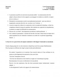 - La personne accueillie est avant tout une personne adulte : la communication doit être adapté à chacun (choisir les bon supports), accompagner le résident et sa famille, le respect de la vie intime, et