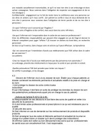 -analyser, être organisé, réaliser des soins et les évaluer, contribuer au recueil de données clinique et épidémiologique, formation et éducation à la santé, secret professionnel