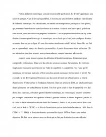 Notion d'identité numérique: concept insaisissable par le droit. Le droit n'a pas réussi à se saisir du concept. C'est à dire qu'aujourd'hui, il n'existe pas une définition juridique satisfaisante de l'identité numérique. Par satisfaisante, on entend une transposition juridique au sens global, qui permette d'appréhender toute la richesse de la notion. En droit on n'arrive pas à globaliser cette notion, car c'est vaste et en perpétuel évolution. C'est en perpétuel évolution car il y a une dizaine d'années quand à émerger le numérique, on se disait que c'était juste quelqu'un derrière un avatar dans un jeu en ligne. Ce sont des notions totalement scindé. Mais à force elles ont fini par se rapprocher à travers les données personnelles. A partir du moment où on utilise une CB sur internet on peut tout trouver: nom,prénom,adresse, compte bancaire, adresse etc...