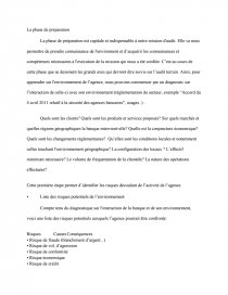 La phase de préparation est capitale et indispensable à notre mission d'audit. Elle va nous permettre de prendre connaissance de l'environnent et d’acquérir les connaissances et compétences nécessaires à l'exécution de la mission qui nous a été confiée. C’est au cours de cette phase que se dessinent les grands axes qui devront être suivis sur l’audit terrain. Ainsi, pour apprendre sur l'environnement de l’agence, nous pouvons commencer par un diagnostic sur l’interaction de celle-ci avec son environnement (réglementation du secteur, exemple “Accord du 4 avril 2011 relatif à la sécurité des agences bancaires”, usages..) :