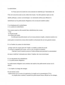 En France prés de la moitié du revenu national est redistribué par l’intermédiaire de l’Etat, de la sécurité sociale ou des collectivités locales. Une telle opération repose sur des intérêts politiques, sociaux ou économiques. Les instruments utilisés pour effectuer la redistribution sur les prélèvements obligatoires et les revenus de transferts (aides)