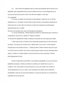 La violence , étant omniprésente dans notre société , est forcément constatable par l'enfant. En effet chaque enfant a déjà assisté à des actions brutales , qu'elles soient physiques ou morales. En revanche , le problème devient encore plus inquiétant quand celle-ci est subie par l'enfant. Nous nous demanderons alors en quoi la violence , et en particulier les abus sexuels , peu être traumatisante pour un enfant. Cette violence à l'encontre des enfants peut se traduire sous différentes formes , que nous étudierons dans notre première partie. Puis , dans un second temps , les conséquences morales que la pédophilie peut avoir pour l'enfant.