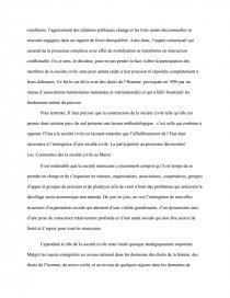Par ailleurs La société civile est sans doute l’un des traits les plus marquants de cette époque, en effet elle est devenue aujourd’hui un facteur déterminant le développement du pays, ainsi un acteur incontournable dans le fonctionnement des sociétés contemporaines. Ce nouveau constat est le produit d’un effort considérable que les acteurs de la société civile ont mené en matière des droits de l’homme, de promotion du rôle sociopolitique de la femme, de défense de l’enfant, de lutte contre la corruption, de lutte contre la pauvreté, de préservation de l’environnement. Comme on peut constater aussi que la société civile à jouer un rôle important dans des domaines où l’Etat a demeuré incapable d’intervenir, ainsi à trouver des solutions à des problèmes surtout à caractères sociales.