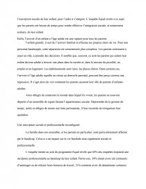 La « servitude » réside également dans les conditions régissant l’inscription sociale de l’enfant, c'est-à-dire les possibilités sociales dont il dispose en termes de scolarisation, de formation, d’emploi ou d’accès aux loisirs. Ces possibilités sont des grilles de lecture de la normalité et, corrélativement, de l’anormalité. A travers elles, la distance de l’enfant par rapport aux « normes » s’apprécie, contribuant à distinguer les personnes « handicapées » et les « valides ». Il semble alors important de s’intéresser aux moyens dont disposent les parents pour assurer l’inscription sociale de leur enfant, pour l’aider à s’intégrer. L’enquête Equal révèle à ce sujet que les parents ont besoin de temps pour rendre effective l’intégration sociale, et notamment scolaire, de leur enfant.