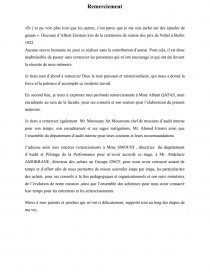 Je tiens à remercier également Mr. Marouane Ait Mouzoune chef de missions d’audit interne pour son temps, son encadrement et ses sages instigations, Mr. Ahmed Errami ainsi que l’ensemble du département d’audit interne pour leurs soutiens et leurs recommandations.