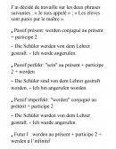 J’ai décidé de travaille sur les deux phrases suivantes : « Je suis appelé » ; « Les élèves sont punis par le maître ». • Passif présent: werden conjugué au présent + participe 2 - Die Schüler werden von dem Lehrer gestraft. - Ich werde angerufen. • Passif perfekt: "sein" au présent + participe 2 + worden - Die Schüler sind von dem Lehrer gestraft worden. - Ich bin angerufen worden. • Passif imperfekt: