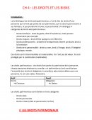 CH 4 : LES DROITS ET LES BIENS Introduction : La loi distingue les droits extrapatrimoniaux, c’est-à-dire les droits d’une personne qui ne font pas partie de son patrimoine, qui ne seront pas transmis à ses héritiers, et qui prendront fin avec sa personnalité. On distingue 4 catégories de droits extrapatrimoniaux : * Droits familiaux : droit de garde, droit d’assistance, droit pension alimentaire par exemple * Droits civiques : droit d’élire quelqu’un et d’être