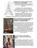 Calligramme de Guillaume Apollinaire réalisé en 1818 intitulé « La Tour Eiffel » « Salut monde dont je suis la langue éloquente que sa bouche ô Paris tire et tirera toujours aux allemands ». Un calligramme est un texte généralement poétique disposé afin de former un dessin en rapport avec le sujet du poème. Ainsi, avant d'être lu, un calligramme doit être observé, comme un tableau. Apollinaire présente la Tour Eiffel comme un symbole de
