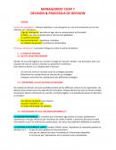 MANAGEMENT CHAP 7 DECISION & PROCESSUS DE DECISION LEXIQUE Facteur de contingence : élément spécifique a une entreprise et a son environnement qui ont une influence sur l’entreprise : * L’âge de l’entreprise : plus elle est ager plus le comportement est formalisé * Sa taille : plus elle est grande plus la structure est globalisée * Le système technique * Son environnement : dynamique, complexe * Les relations de pouvoir : centralisé ou décentraliser