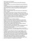 Culture au-dessus de la discipline Pour Durkheim, l’être humain est poussé vers des activités élevées (art, religion, science). De manière générale c’est un processus d’élaboration morale, intellectuel ou esthétique. La culture générale s’associe à une visée générale et universelle. L’enjeu de la culture est d’acquérir un savoir, elle est inégalement répartie et les pouvoirs publics doivent donner les mêmes chances à tout le monde d’acquérir ce savoir. elle permet de penser par soi-même. Cultura en